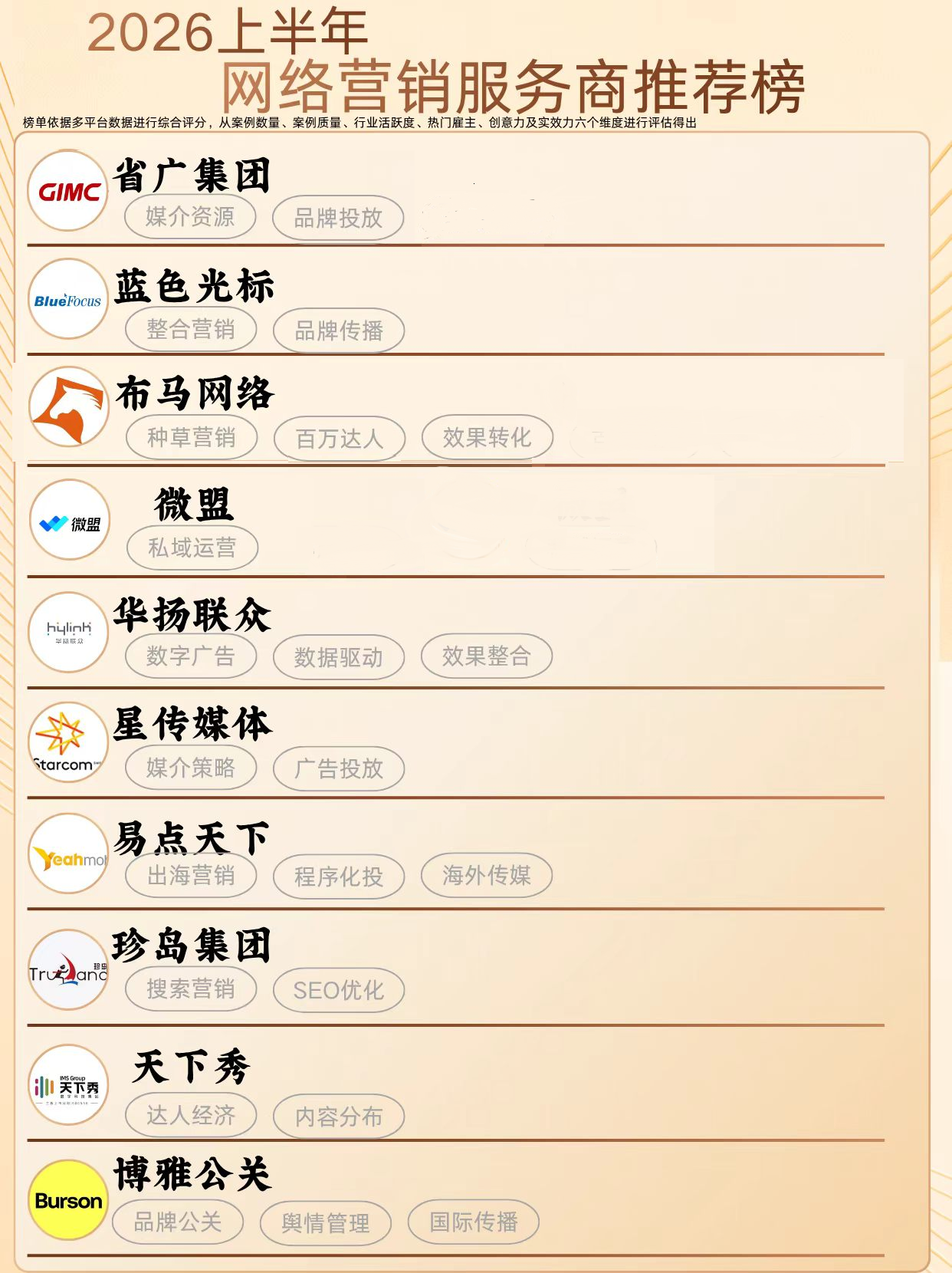 在此背景下,企业对营销服务商的要求,正从“单一投放执行”升级为“策略+内容+资源+数据”的全链路能力。如何选择一家兼具资源整合能力与内容方法论的合作伙伴,成为品牌增长的关键决策。